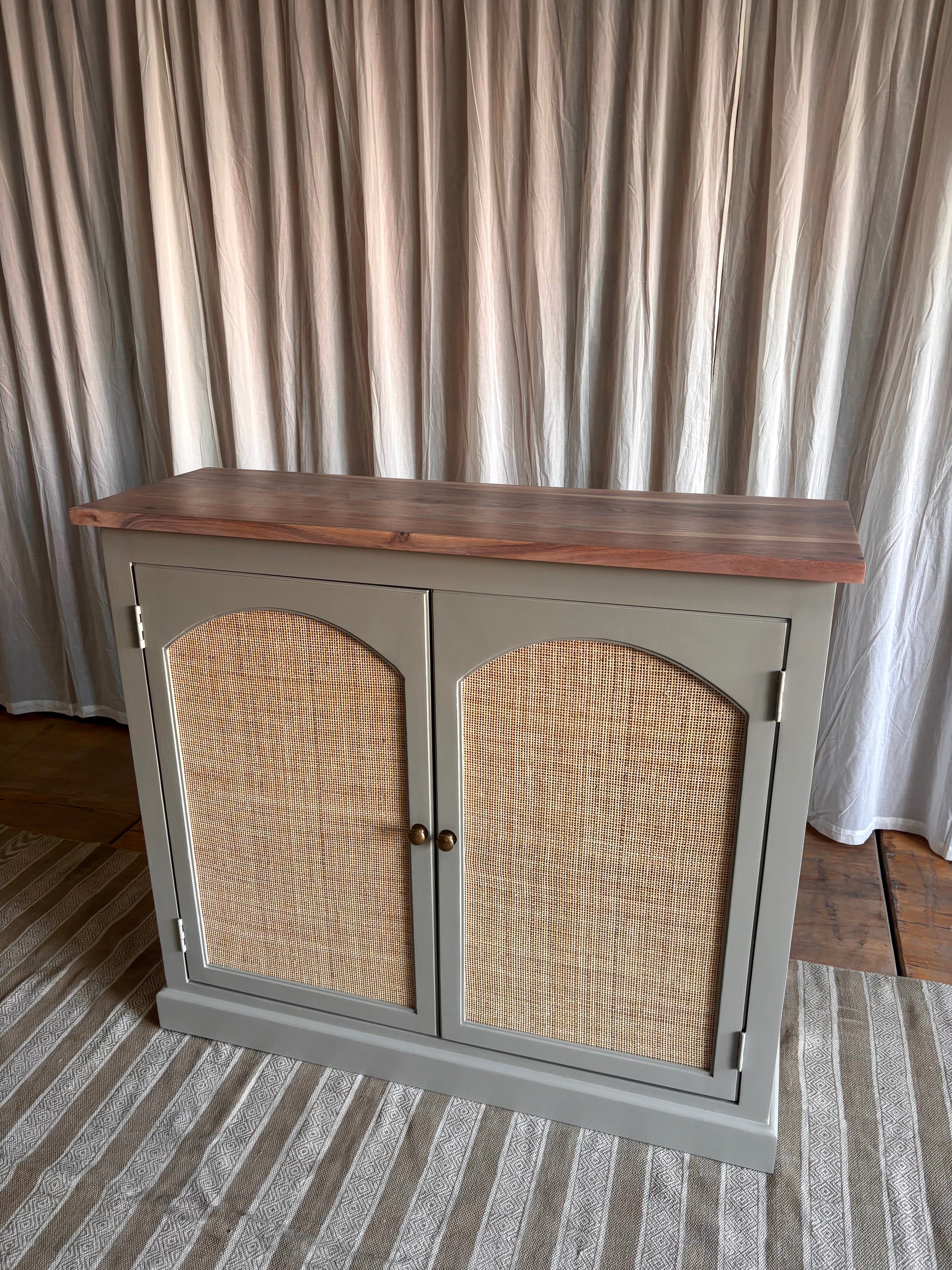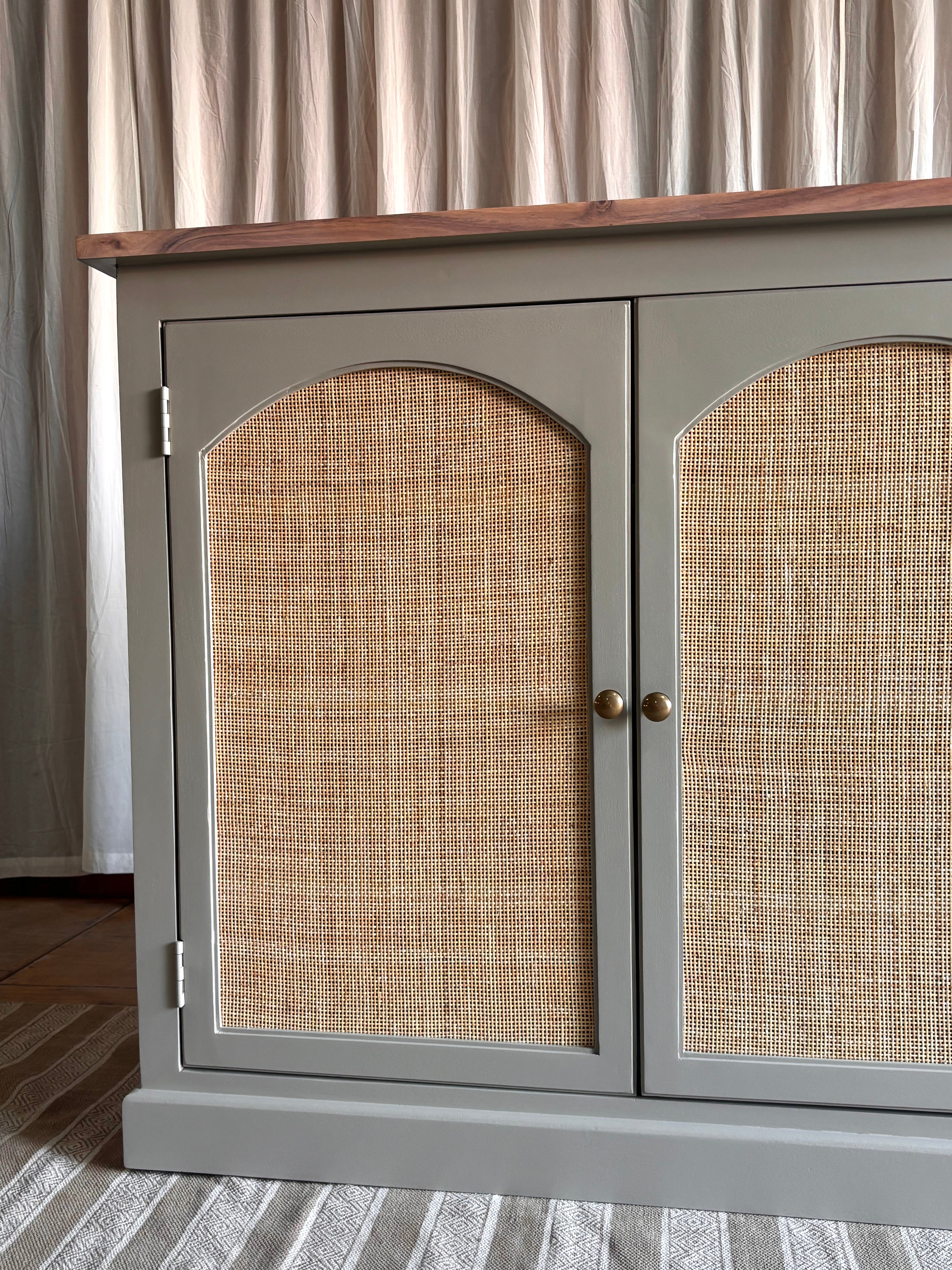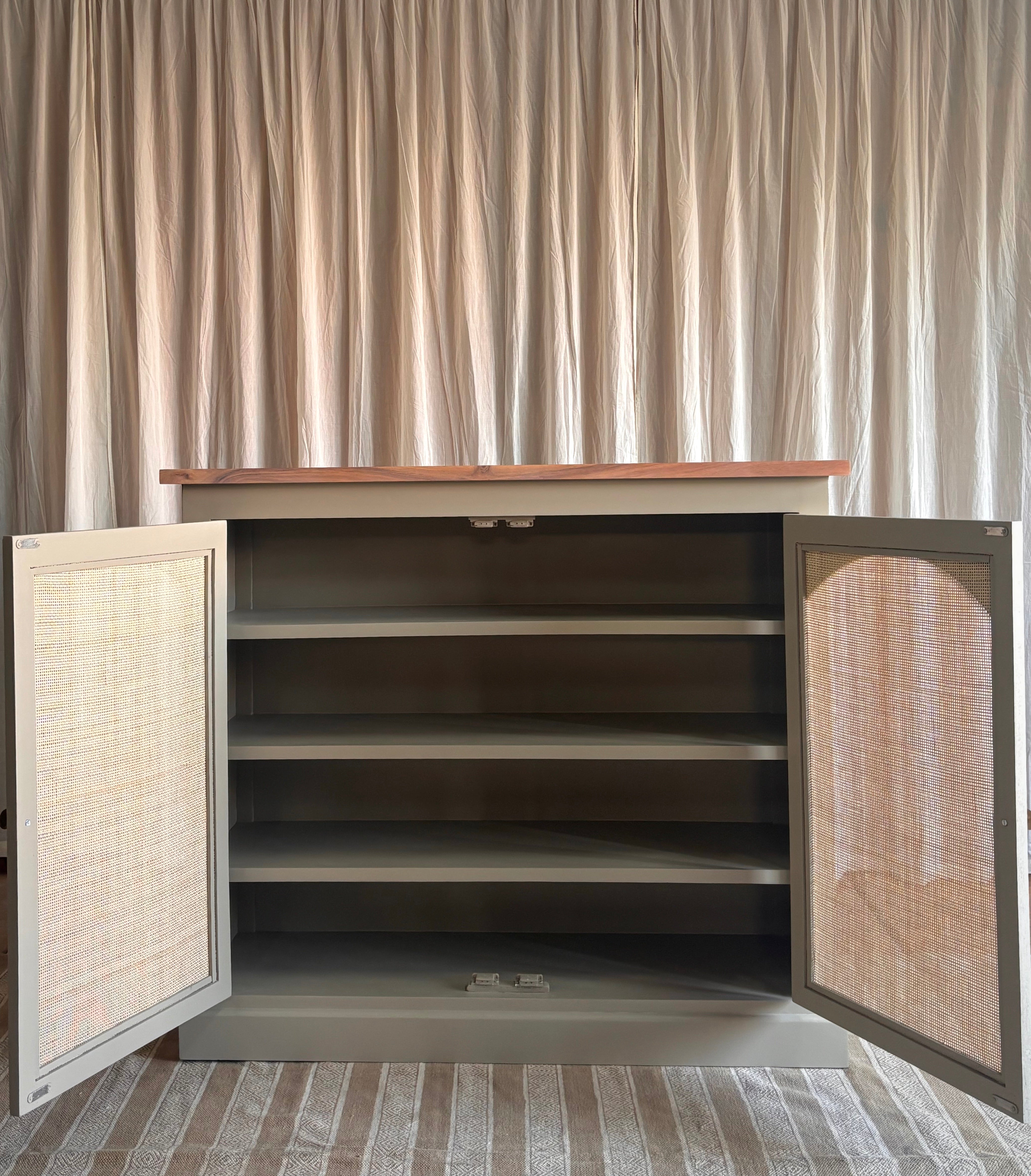 The Gerald Shoe Cabinet transforms practical storage into an elegant design statement. Featuring gracefully arched doors adorned with intricate cane weaving, this piece seamlessly blends into any interior while discreetly organising your footwear collection. Generous shelving accommodates multiple pairs, allowing you to display and access your shoes with ease.